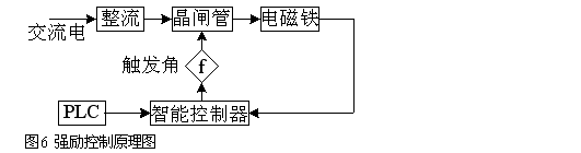 針對這種情況,筆者設(shè)計(jì)了一種基于直流調(diào)速器和可編程控制器的全數(shù)字電磁鐵整流控制方式,利用軟件編程代替物理接點(diǎn),各種控制參數(shù)數(shù)字輸入,并且可以改寫和鎖存,不受外界影響。內(nèi)部智能控制模塊可以實(shí)現(xiàn)多級自動勵(lì)磁和消磁以及參數(shù)自動尋優(yōu)功能,可以保證系統(tǒng)工作在最佳狀態(tài)。